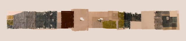 (collage of etching on handmade paper and antique book pages from Japan 84" x 8")